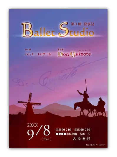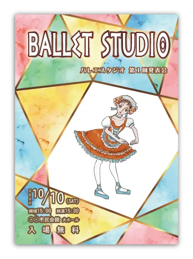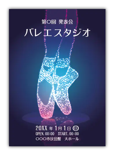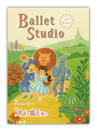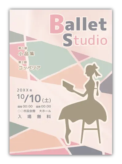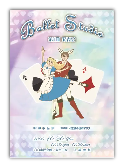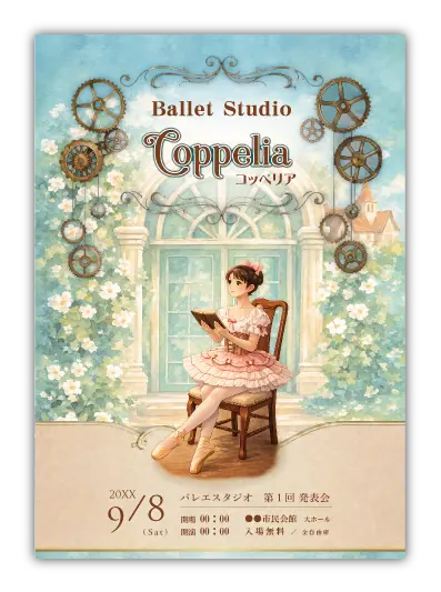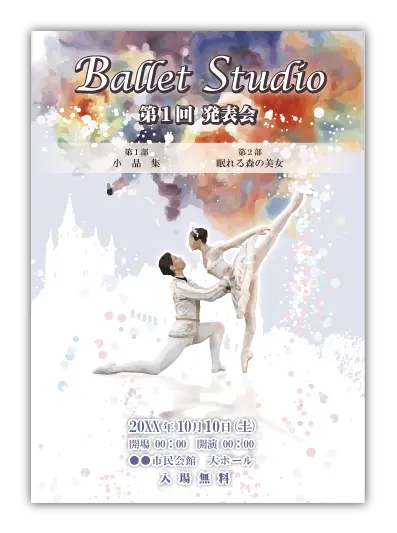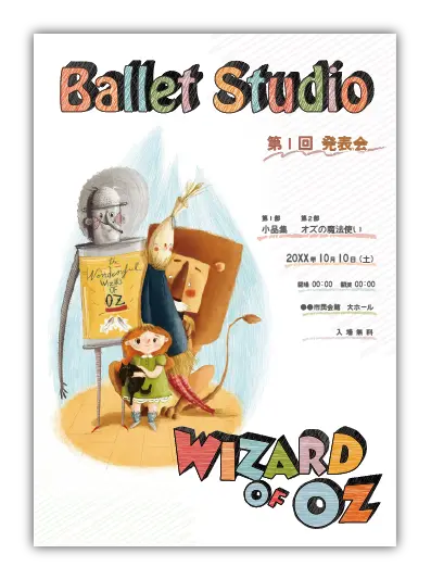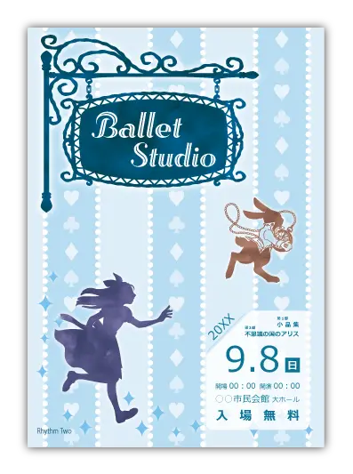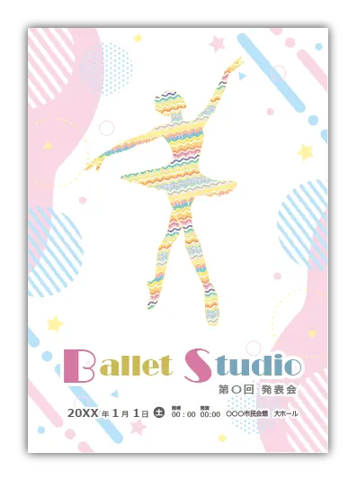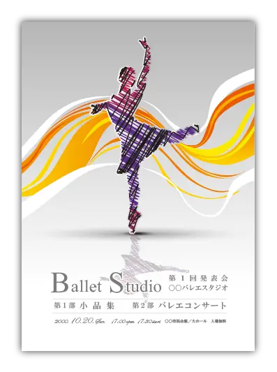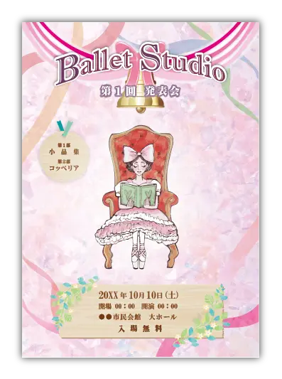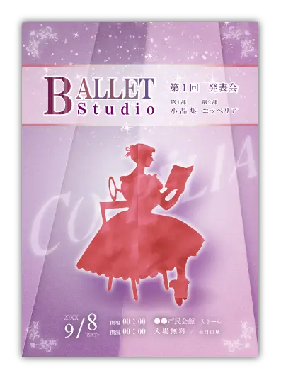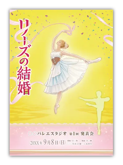 サンプルを組み合わせたり、配色やシルエットを変更することでオリジナルのバレエ発表会プログラムを制作できます。