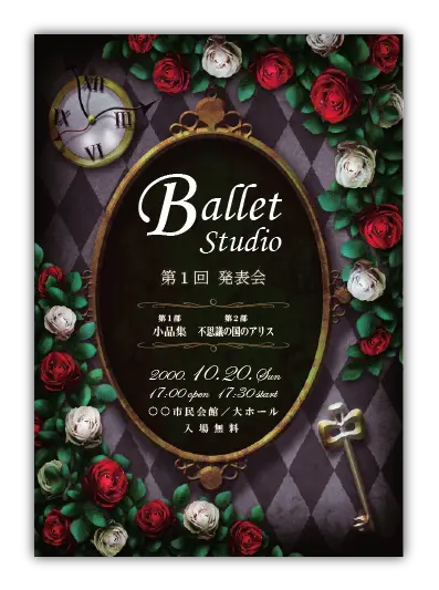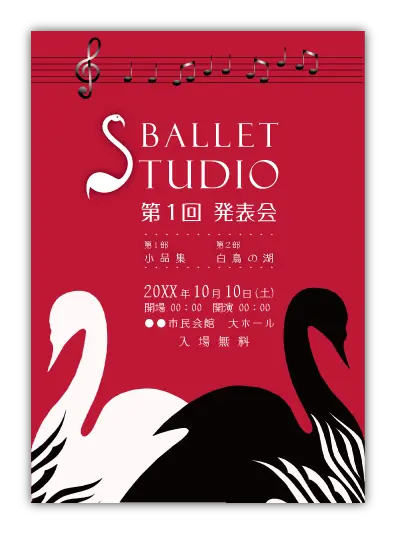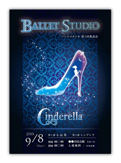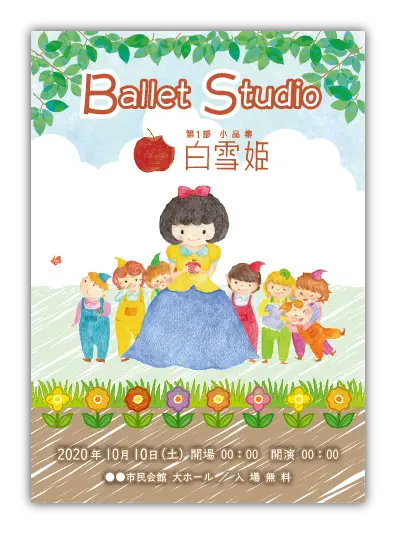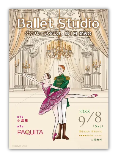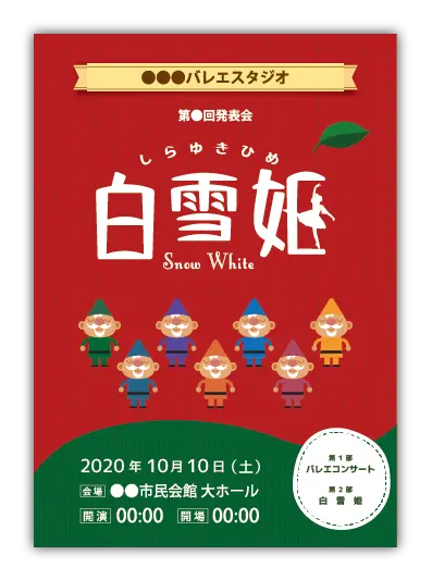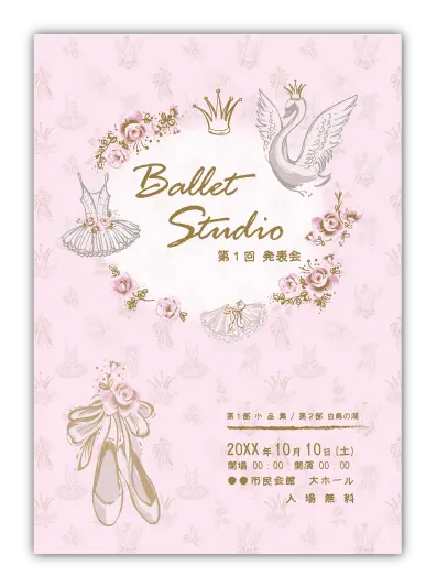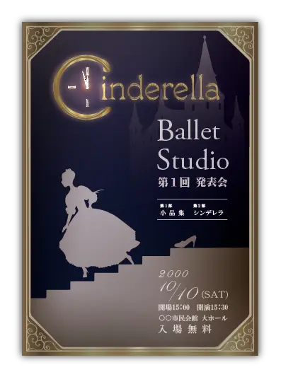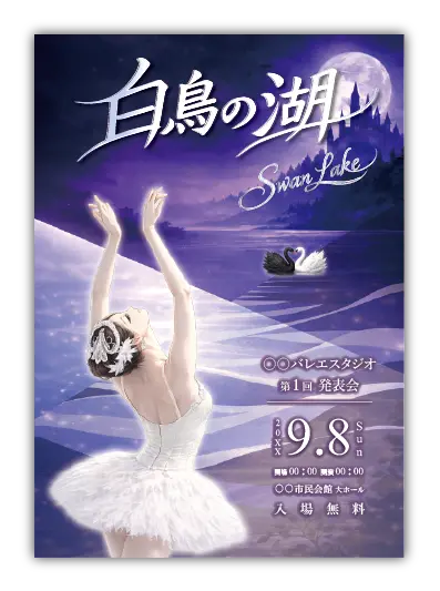 バレエ発表会の定番演目のデザインが多数あります。